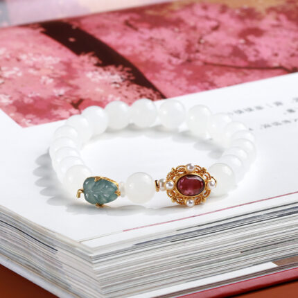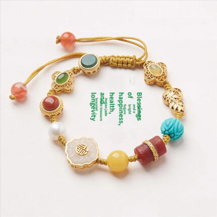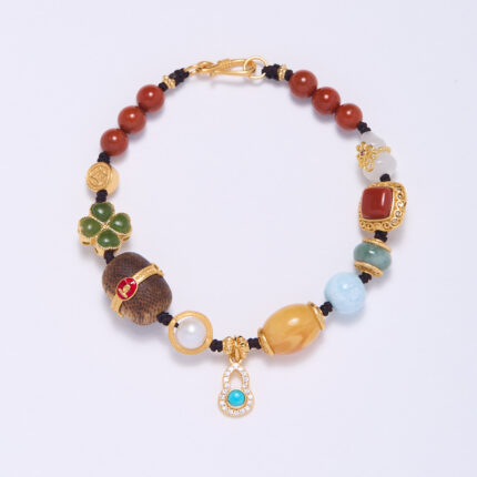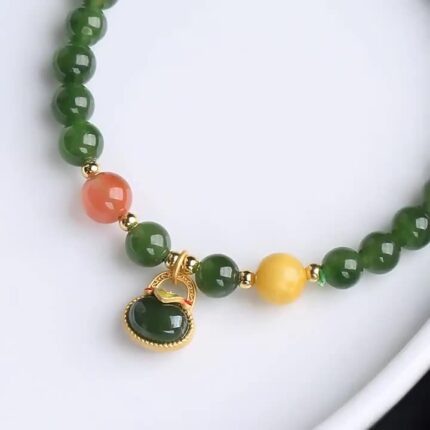 105.Hetian Jade Multi-Gem Ethnic Charm Bracelet