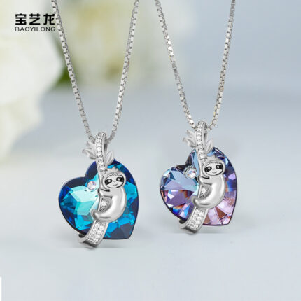 63.Sloth Heart Crystal Necklace