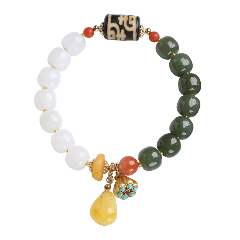 106.Hetian Jade Amber Ethnic Charm Bracelet