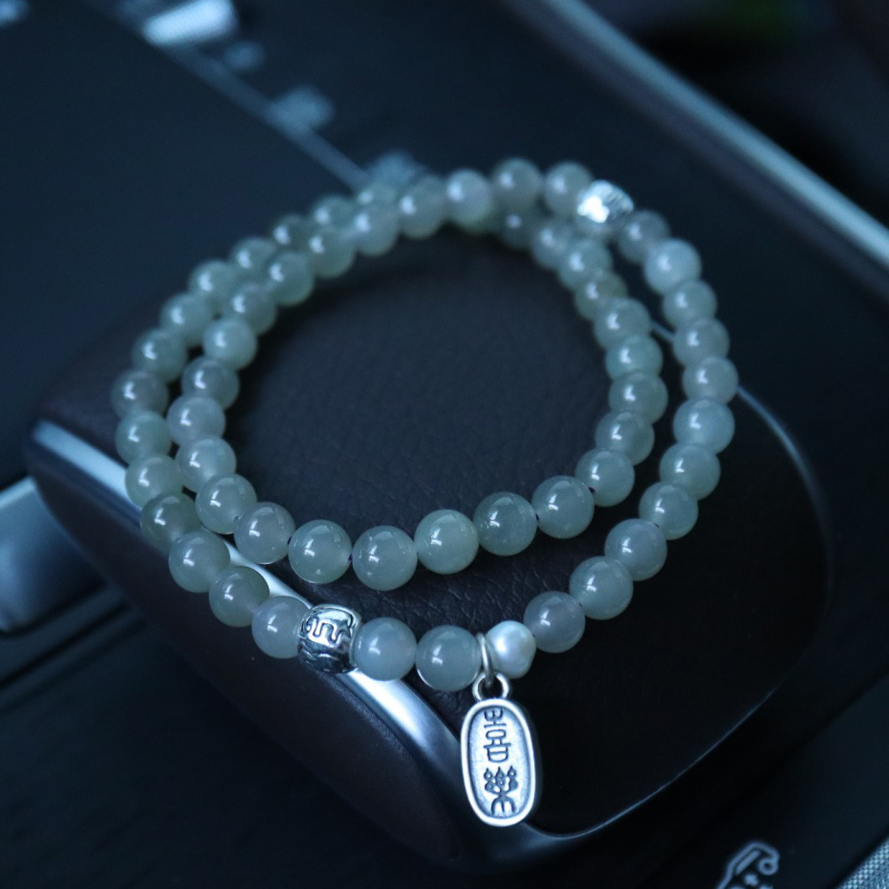 Be the first to review “109.Elegant Hetian Jade Peace Joy Silver Multi-Wrap Bracelet”