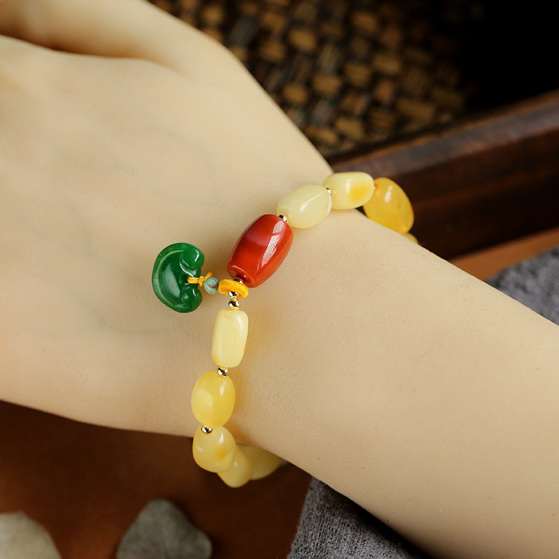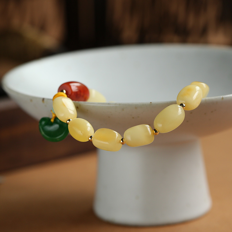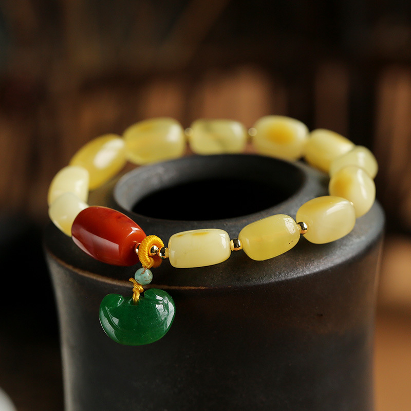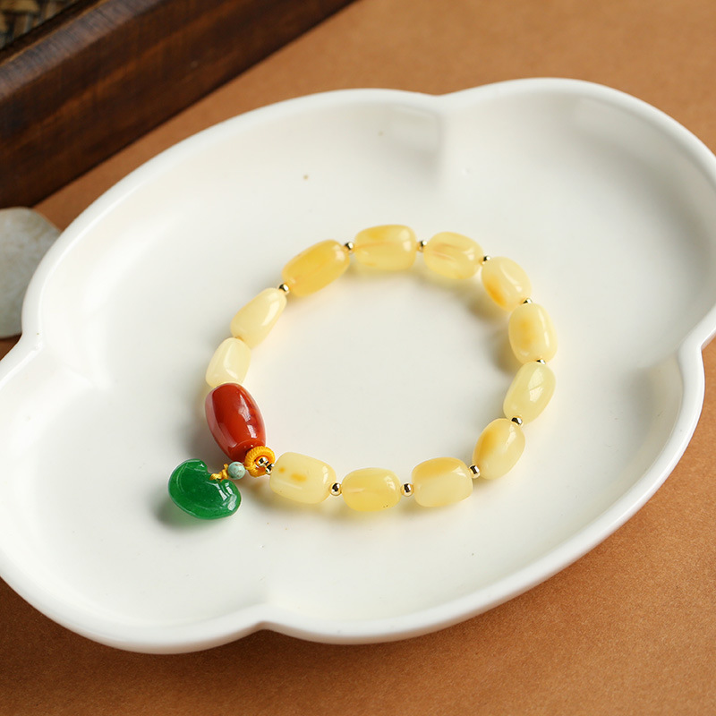 115.Chic Natural Amber Jade Bead Charm Bracelet