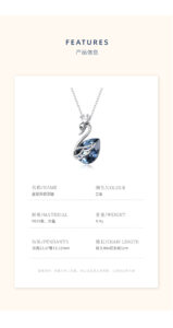 Detailed specifications of the Crown Swan Necklace are presented:
