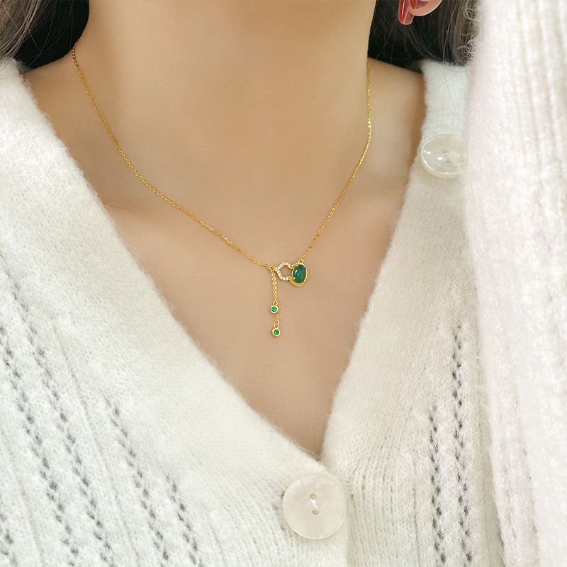 - Material: S925 Sterling Silver, Green Chalcedony, Zircon