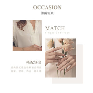 Titled “OCCASION ”, this image outlines the necklace’s versatility. The text (Matching Occasions) states: “The classic style is suitable for various occasions: home, workplace, dating, weddings, etc.” Visuals of the necklace paired with different looks reinforce its adaptability to both casual and formal settings.