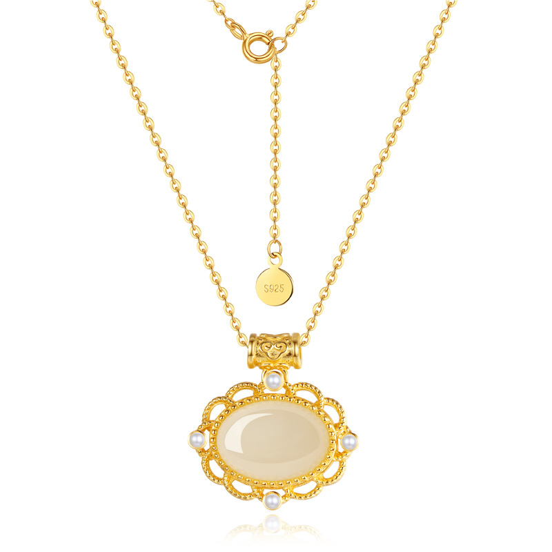 23.Golden Lace Hetian Jade Pendant Necklace