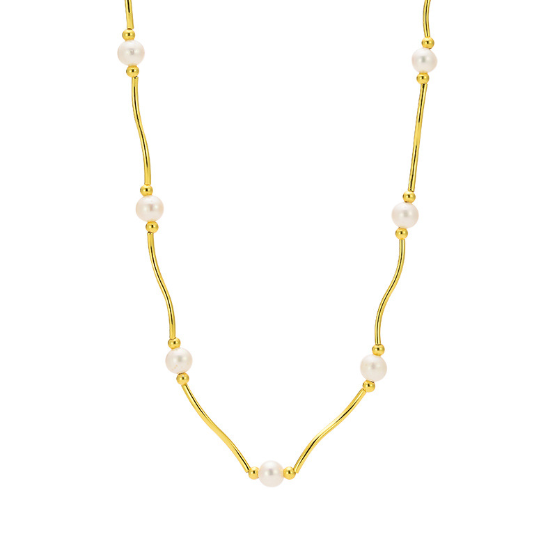 26.Flowing Pearl Gold Necklace