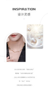 Titled (Design Inspiration), this image draws from the luminous quality of pearls. “Flowing light” is a “visual expression of pearl luster”, symbolizing “discovering and showcasing one’s self-worth”. Just as a person’s value is refined by time and experience, the “fluidity of ‘flowing light’” represents proactively releasing one’s charm. Visuals of the necklace on a model and glowing pearls reinforce this symbolic connection.