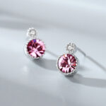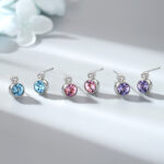 All three color variants—ocean blue, romantic pink, and dreamy purple—are displayed together, highlighting the craftsmanship and attention to detail in each pair. The clean, light backdrop ensures the earrings’ colors and sparkling stones are the focal point, emphasizing their appeal as both everyday and special-occasion accessories.