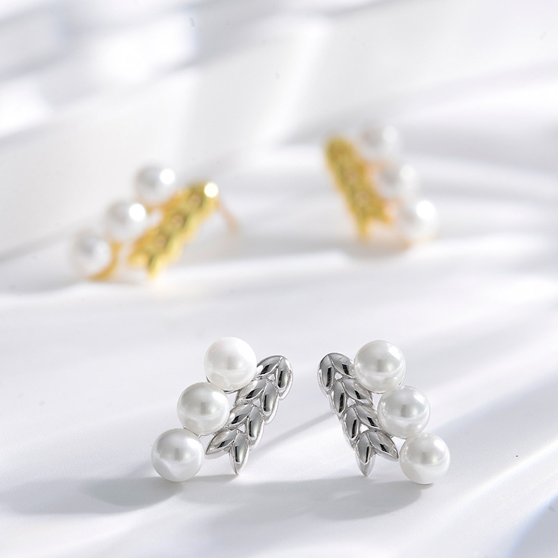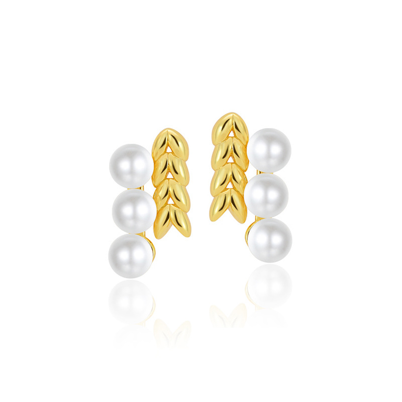 This image showcases the Golden Spike Pearl Earrings by Baoyilong. The earrings feature an elegant design with golden wheat spike motifs paired with lustrous white pearls, crafted from polished gold-plated metal. Displayed against a soft, light backdrop with subtle textural details, the earrings exude a sense of timeless sophistication and natural charm. The text “(GOLDEN SPIKE PEARL)” and highlight the design’s inspiration from wheat spikes—symbolizing abundance, growth, and prosperity—while the pearls add a touch of classic elegance. Perfect for those who appreciate jewelry that blends nature-inspired motifs with refined style, these earrings are versatile enough for both everyday wear and special occasions.