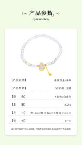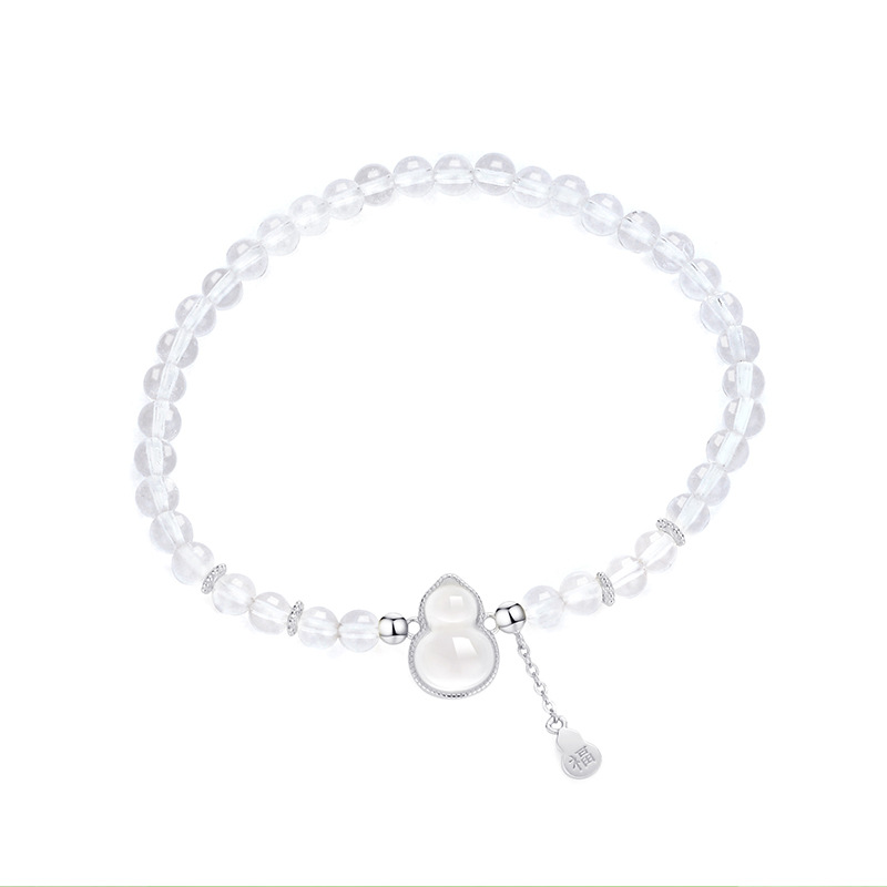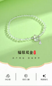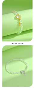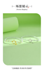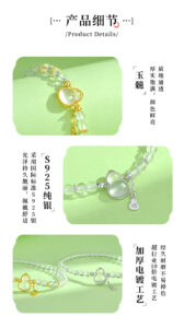 This bracelet collection, named “Full Blessings of Fortune and Prosperity” Bracelet, features an elegant design centered around the gourd motif, a symbol of good luck and abundance in Chinese culture. Crafted with S925 silver and high-quality chalcedony, the bracelets come in two color options: K-gold and platinum, each exuding a delicate and refined charm. The transparent beads add a touch of purity, while the gourd pendant,  “Fulu” (fortune and prosperity), carries profound cultural significance, making it not just a piece of jewelry but a carrier of blessings.