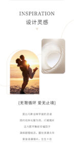 The design draws from the Moebius strip, a mathematical symbol of infinity, interpreted here as “endless love, boundless romance”. The image pairs a romantic scene of a couple at sunset with a visual representation of the Moebius loop, emphasizing the theme of eternal connection. The text explains: the Moebius strip embodies the romance of the universe; its minimalist lines simplify complexity, shining elegantly; the dynamic circle gathers “happiness factors”, (interpreting) a sweet ending and preserving romance forever; love cycles endlessly, never fading. This symbolism makes the necklace a heartfelt token of enduring affection.
