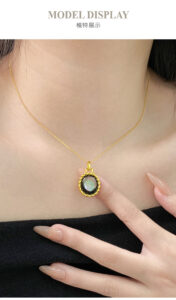 - Multi-Layer Electroplating: The necklace undergoes plating with platinum or K gold, resulting in a “thicker layer than ordinary plating, non-fading, with a fashionable and elegant finish that enhances temperament”. The dual colorways are displayed side by side, showcasing the brand’s attention to material quality and design cohesion.