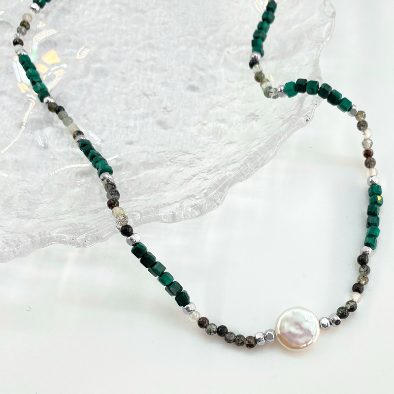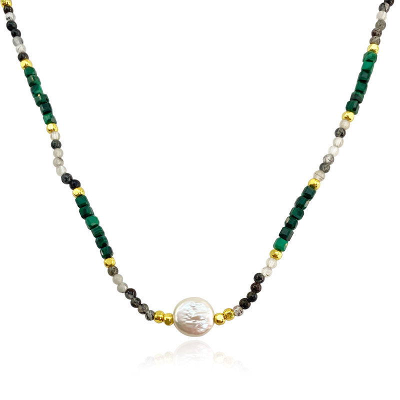 - Size: Baroque Pearl – 10mm; Malachite – 3.2mm; Chain Length – 40cm + 2.5cm + 2.5cm Extender