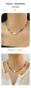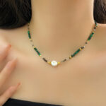 - Second Model: Shown with a light-colored top, highlighting the necklace’s ability to complement casual and refined looks.