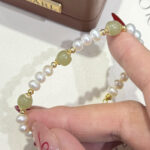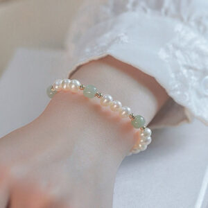 Styled on a wrist with a white, textured sleeve, this Hetian Jade & Pearl Bracelet exudes (light luxury) charm. The combination of Hetian jade, natural pearls, and 14K gold-filled details creates a cohesive look of sophistication, perfect for elevating everyday attire or special occasions.