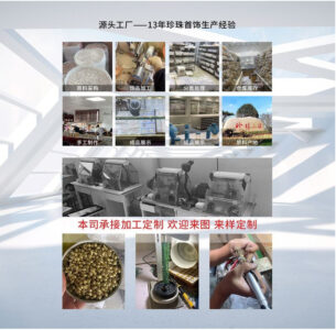 This image showcases the 13-year production experience of “Pearl of the Ocean,” detailing steps like raw material procurementjewelry processingclassificationwarehousinghandcrafting, and finished product display. It emphasizes the factory’s capability to undertake custom orders, welcoming designs and samples for personalized jewelry creation.